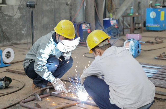 組對工人不僅要有識圖知識、常用金屬材料及熱處理知識、矯正(復合)變形原材料及一般結構件的能力,會計算展開料長,還得會使用維護剪床、氣割、電焊機等設備,并進行位置定位焊、鉚接、螺紋連接,具備檢驗尺寸、形狀位置等能力。