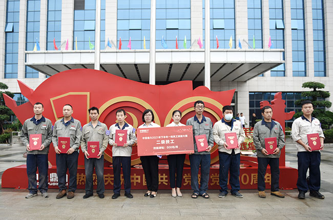 王總、劉總為2等技工獲獎代表頒獎,2等技工每月享受500元技能津貼
