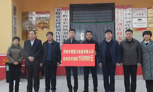 2017年12月28日,河南中譽鼎力智能裝備有限公司向劉莊村捐款15萬元,用于劉莊村的基礎設施建設;并決定幫助劉莊村粉皮打開度,進而增加當地農民的收入。