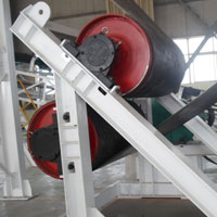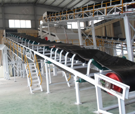 皮帶輸送機是一種摩擦驅動以連續方式運輸物料的機械,主要由機架、輸送皮帶、托輥、滾筒、張緊裝置、傳動裝置等組成。工作時驅動滾筒由電動機通過減速器驅動,輸送帶依靠驅動滾筒與輸送帶之間的摩擦力拖動。驅動滾筒一般都裝在卸料端,以增大牽引力,有利于拖動。物料由喂料端喂入,落在轉動的輸送帶上,依靠輸送帶摩擦帶動運送到卸料端卸出。
