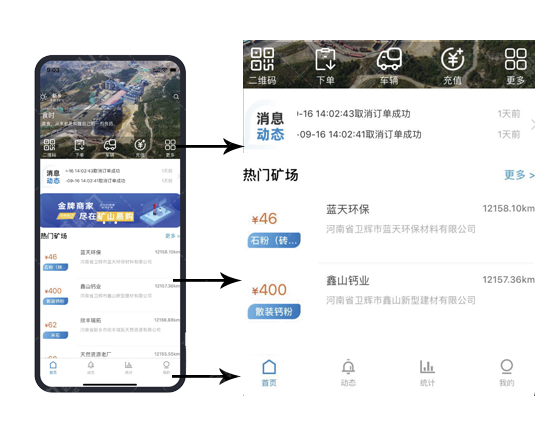 中譽鼎力礦山易購APP,可以讓買方(需求方、司機)通過礦山易購APP(也可通過微信公眾號、小程序下單),實現(xiàn)一鍵快速下單、直接在線上訂購石料,下單成功后的訂單信息會發(fā)送到賣方易購后臺管理中,賣方收到訂單信息后即可合理安排生產(chǎn)計劃。