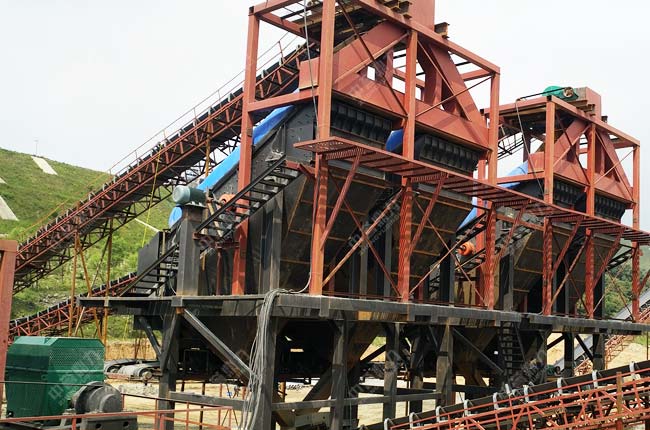 YKZ系列圓振動篩是中振篩,其采用筒體式偏心軸激振器及偏心塊調整振幅,一般安裝三層或四層篩網出五種砂石料,因其結構簡單,篩分產量大,深受大型砂石生產線的喜愛。