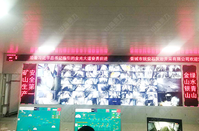 礦山生產管理系統監控大屏,可在中控室實時觀察設備運行情況。